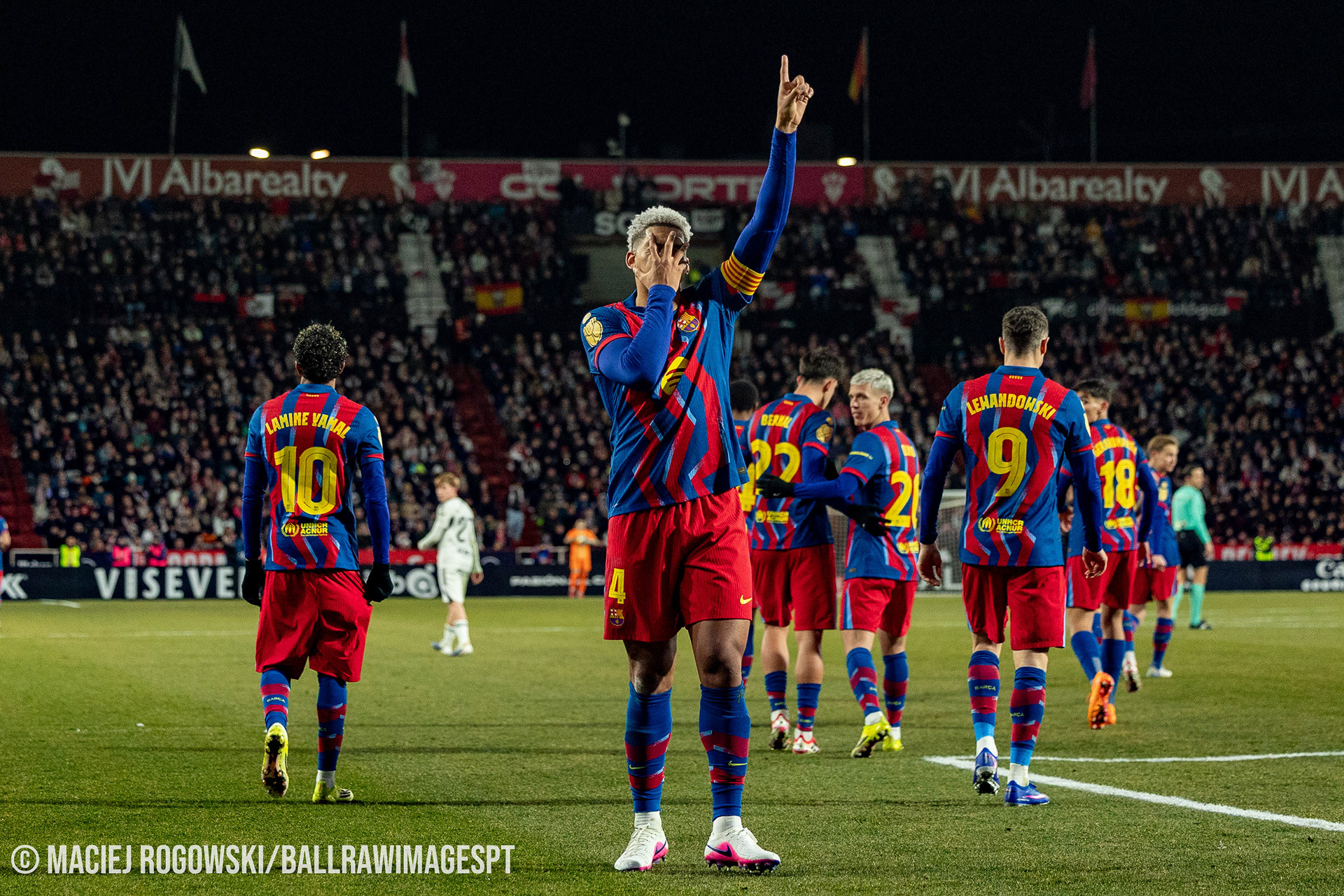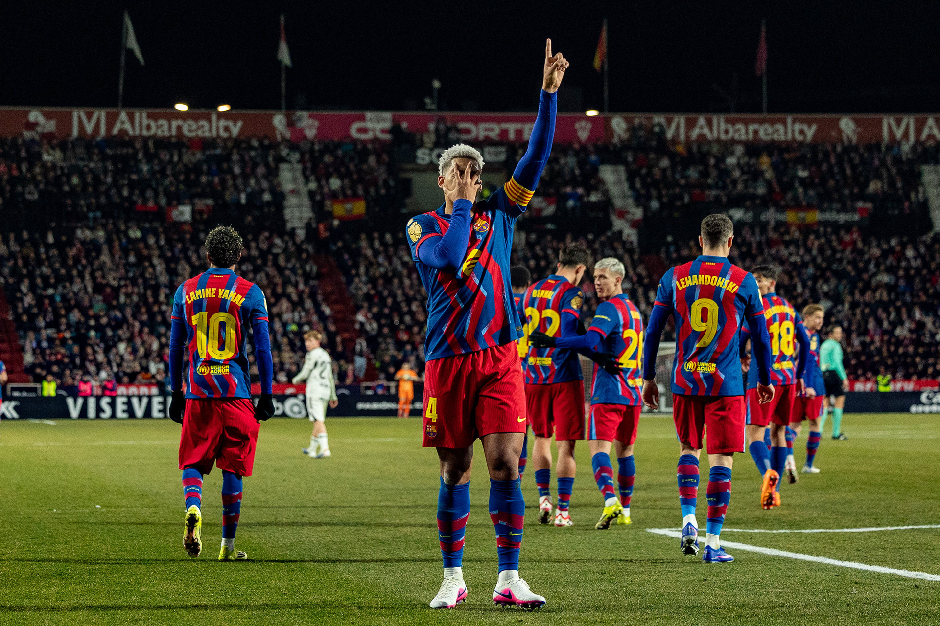 Depois de uma primeira parte equilibrada, em que o Albacete mostrou personalidade e conseguiu travar várias investidas blaugrana, o marcador foi inaugurado por Lamine Yamal. O jovem extremo aproveitou uma recuperação de bola em zona adiantada para finalizar com precisão e colocar o Barcelona em vantagem.