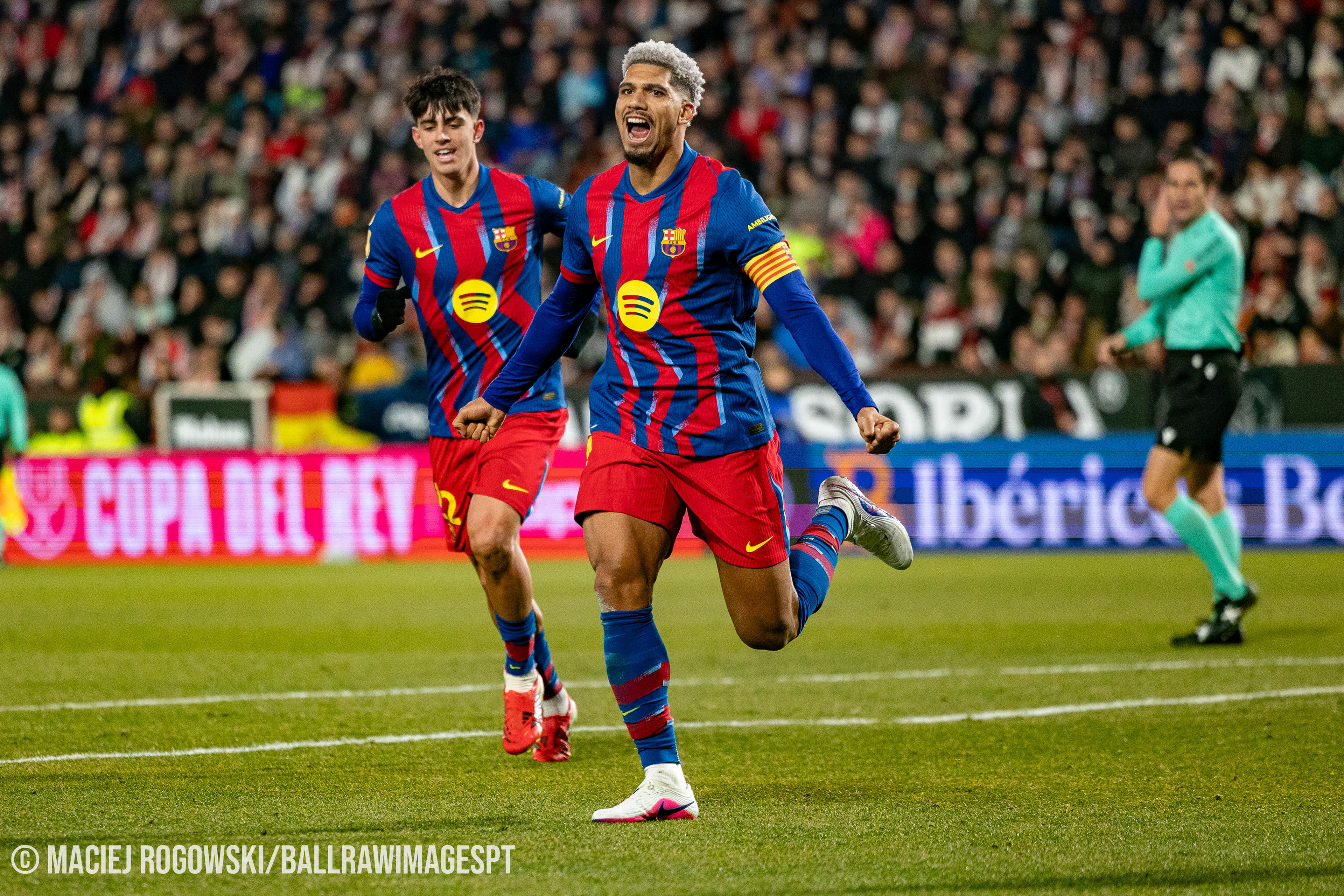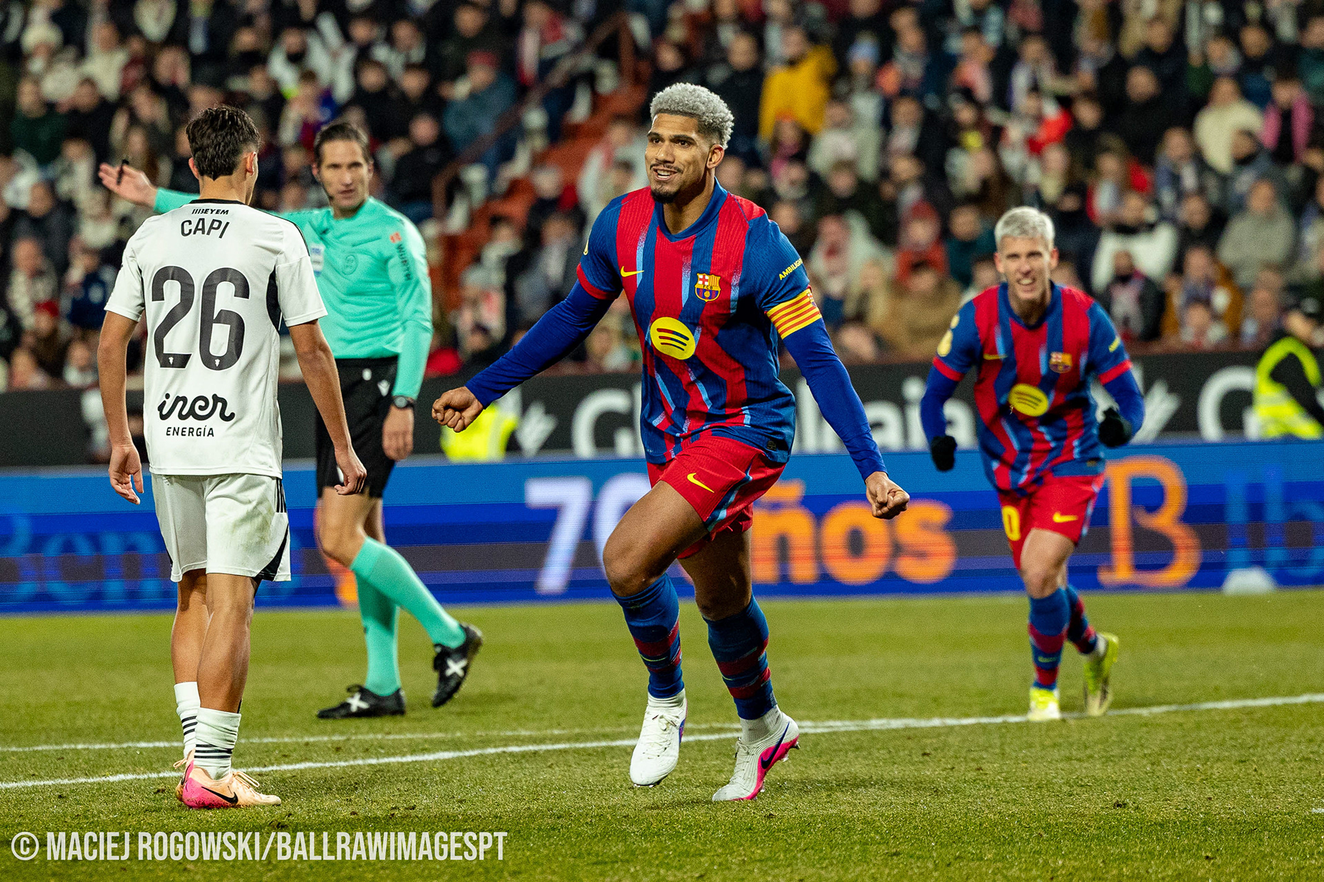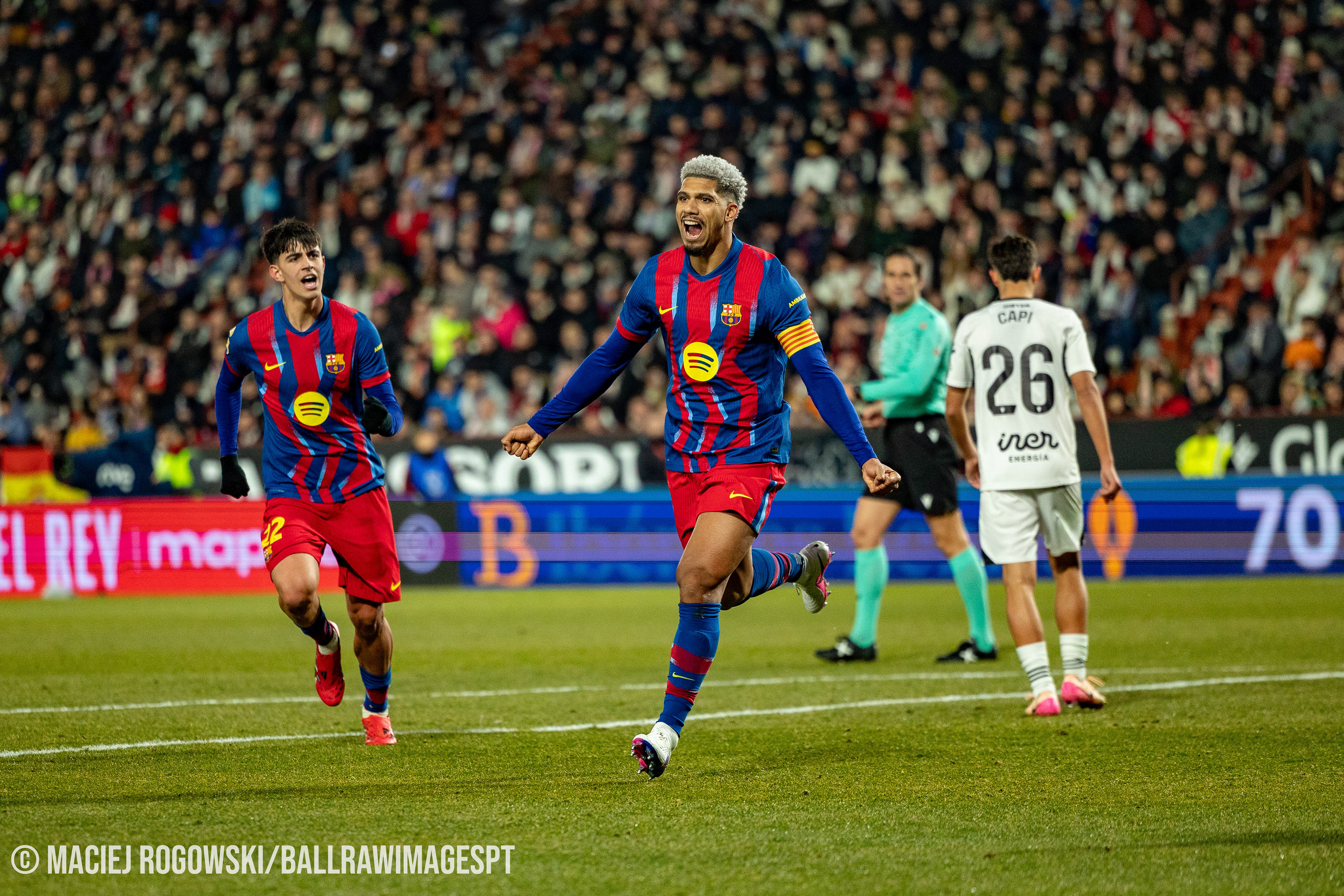 Na segunda parte, o domínio catalão acabou por traduzir-se em novo golo. O capitão Ronald Araújo elevou-se mais alto após um canto e cabeceou para o 2-0, aparentemente deixando a eliminatória resolvida.