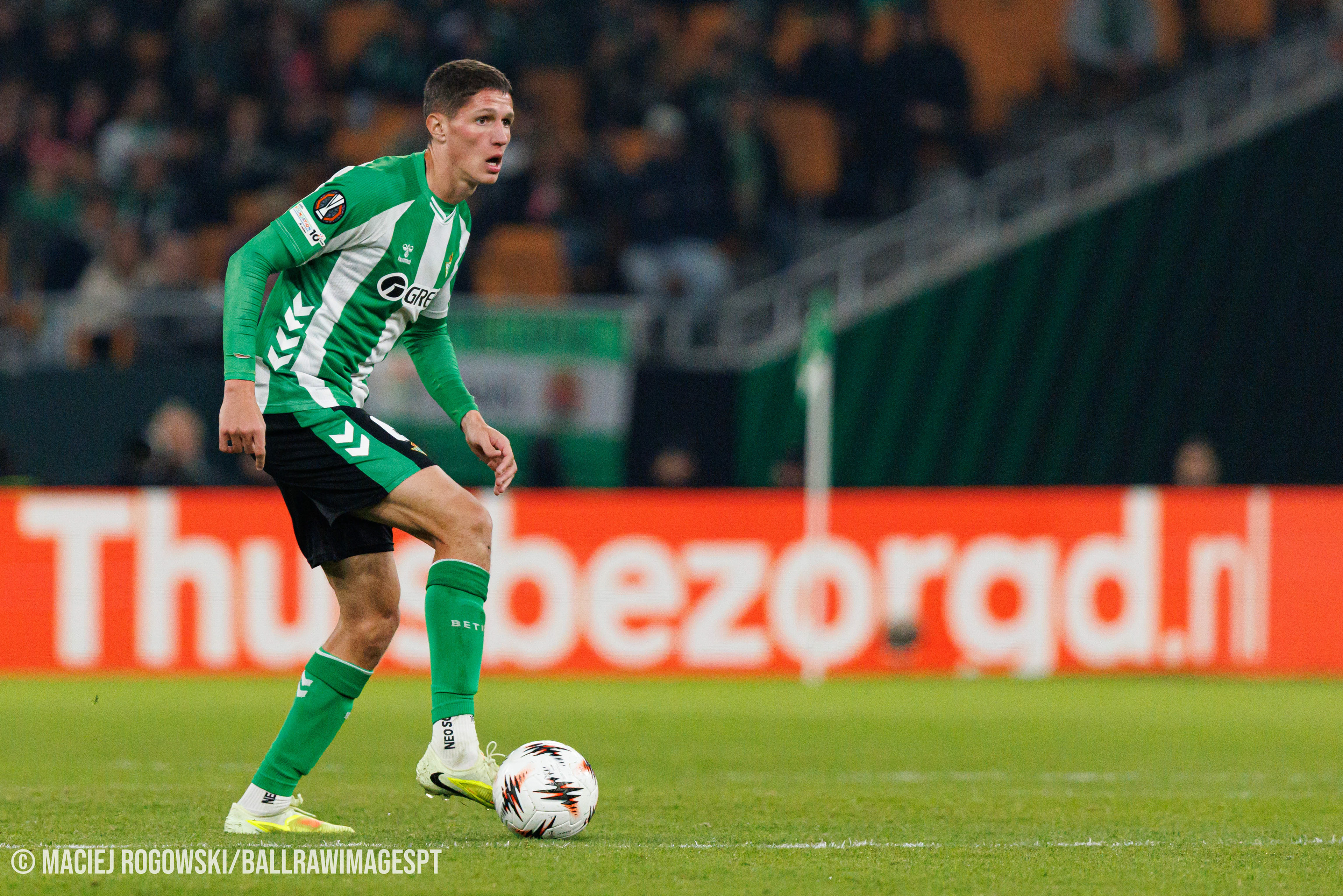 Apesar do choque inicial, o Betis foi crescendo no encontro. Após alguns minutos de domínio neerlandês, os andaluzes assumiram a posse e começaram a criar perigo. O golo surgiu aos 42 minutos, quando Antony insistiu num lance pela direita e cruzou para Cucho Hernández, que finalizou de cabeça com grande qualidade.