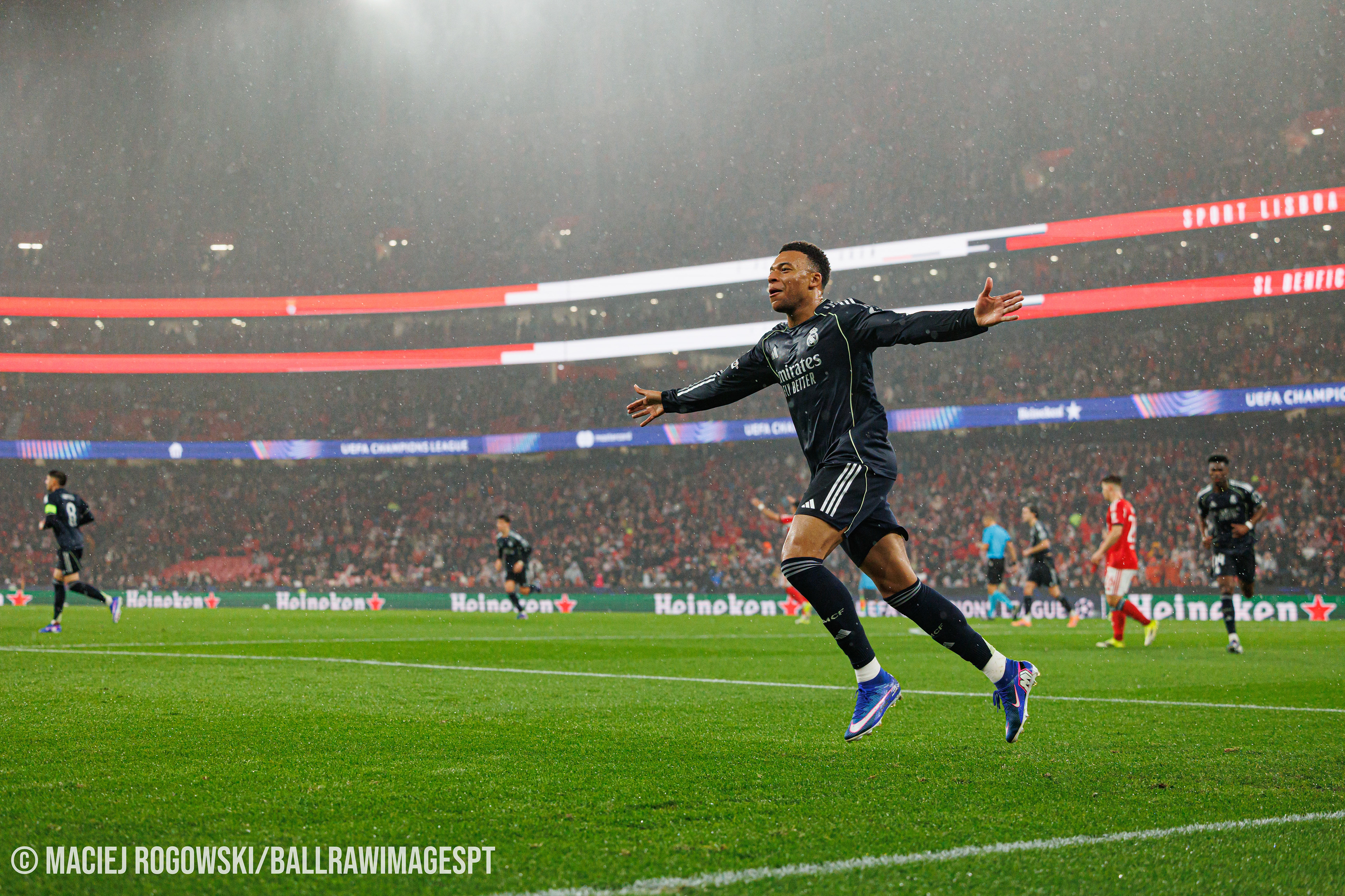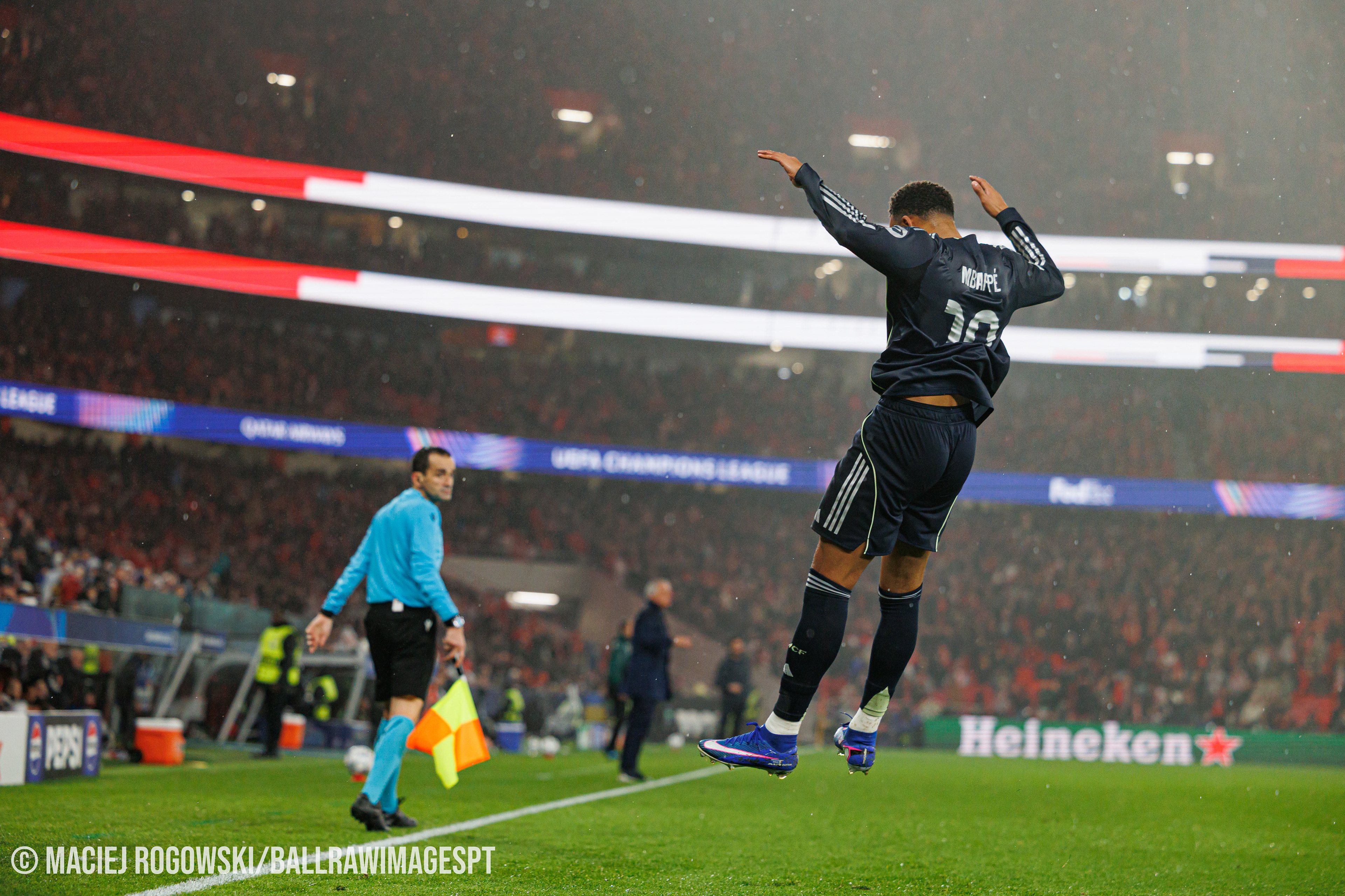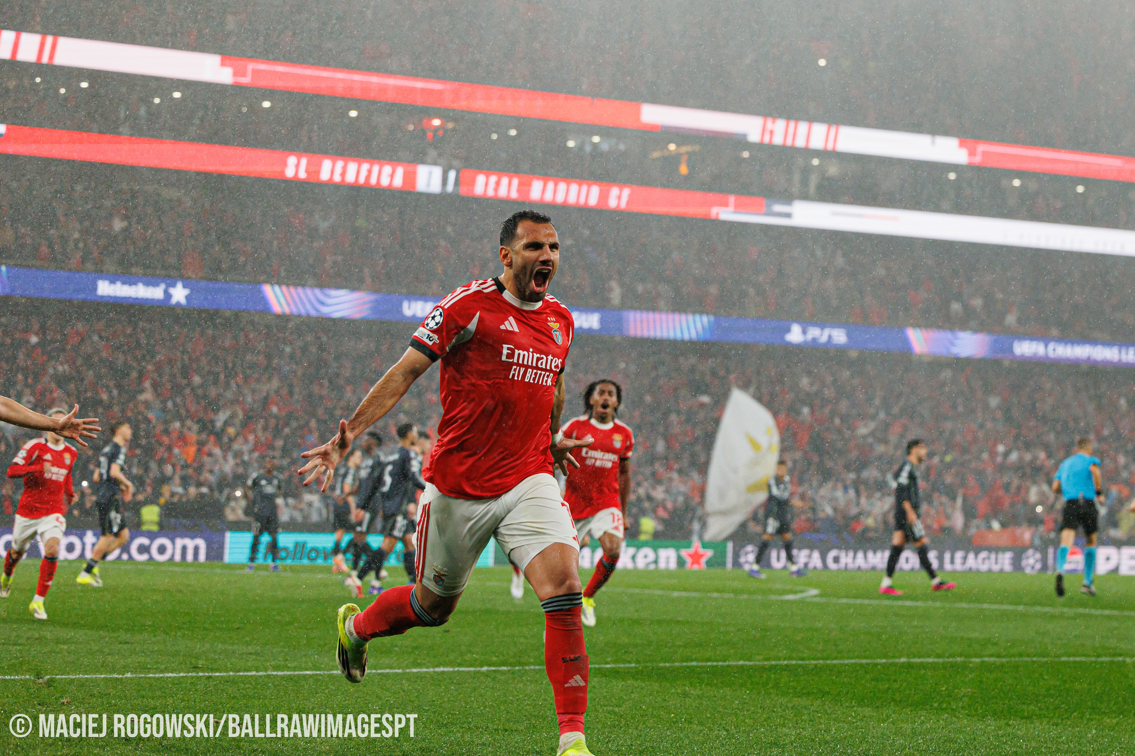 As águias entraram sem complexos e criaram várias ocasiões na primeira parte, mas foi o Real Madrid a adiantar-se no marcador, por Mbappé. A resposta encarnada surgiu ainda antes do intervalo, com Schjelderup a empatar e Pavlidis a consumar a reviravolta de grande penalidade, levando o Benfica em vantagem para o descanso.